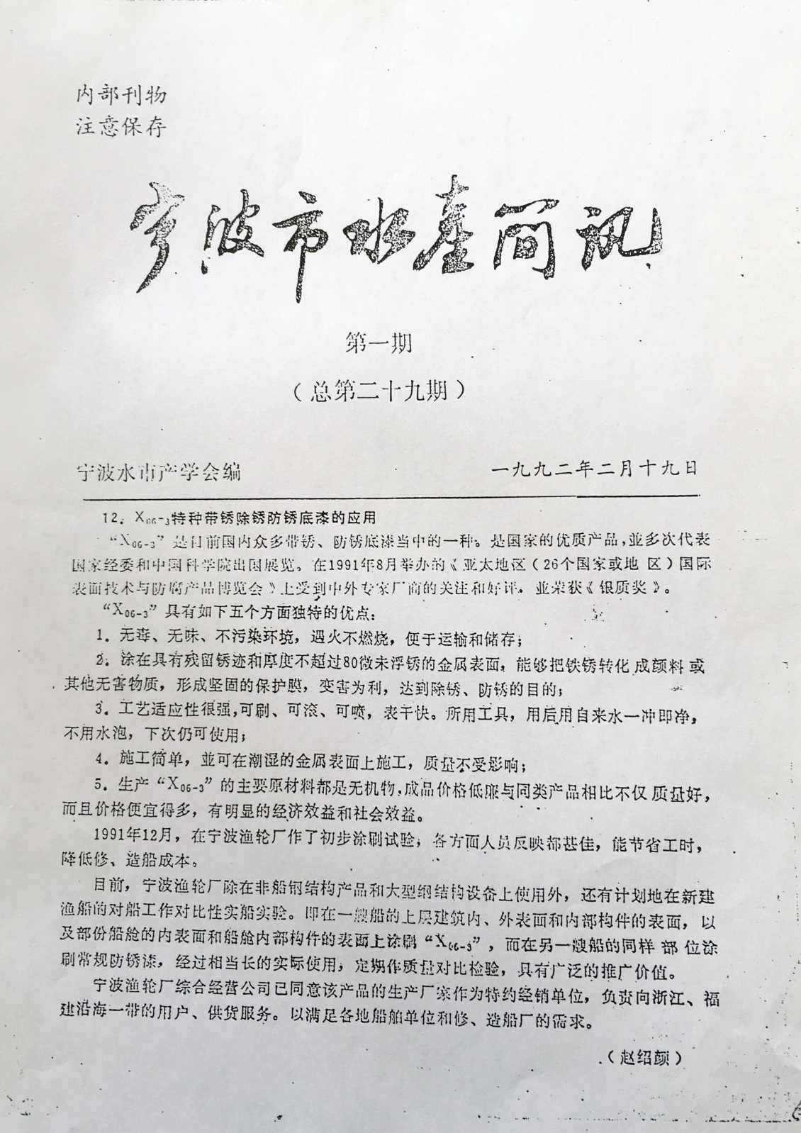 徐州市水性漆厂成立于1990年,产品自主研发填补国内水性工业空白。徐州市三为水性漆科技有限公司与中国矿业大学联合成立水性漆研发中心,从韩国尚庆大学引进国际纳米学者博士后姜继森教授为我公司技术总经理,专注水性纳米应用。三十余年来硕果累累,先后承接两 次 国 家 级 星火计划,中小企业技术创新基金,多项国家发明专利授权并在国家专利局“国际专利博览会”国际专利博览会中荣获创新奖与金奖,全国军民融合企业,《CCTV工匠精神》企业,国家生产力促进中心评为中国好技术,获“中国节能环保创业应用大赛”创新应用奖,中国企业诚信经营示范单位,江苏省民营科技企业,中船重工涂装专业委员会成员,《中国修船》编委,多次在 国 家 级 期刊发布学术论文,通过中国船级社检测,通过中国铁道部科学院检测。?